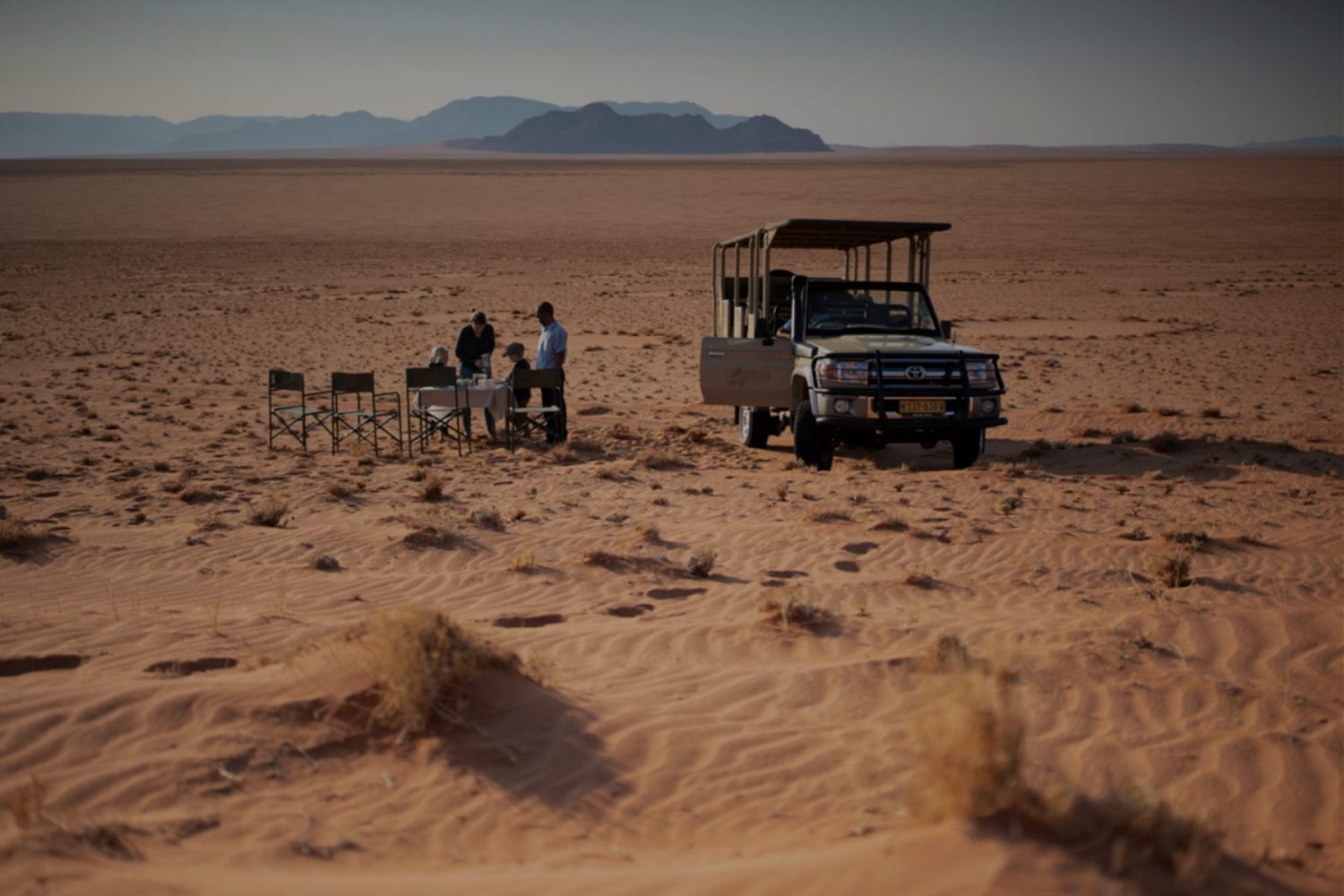 Witness the surreal beauty of the Namib Desert. Climb the towering red dunes, explore Deadvlei’s ancient clay pan, and enjoy a private picnic in the dunes.